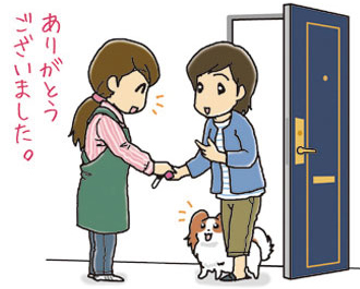 ご希望の日時に、あらためてお伺いし、基本的には、鍵を手渡しの上ご返却させていただきます。